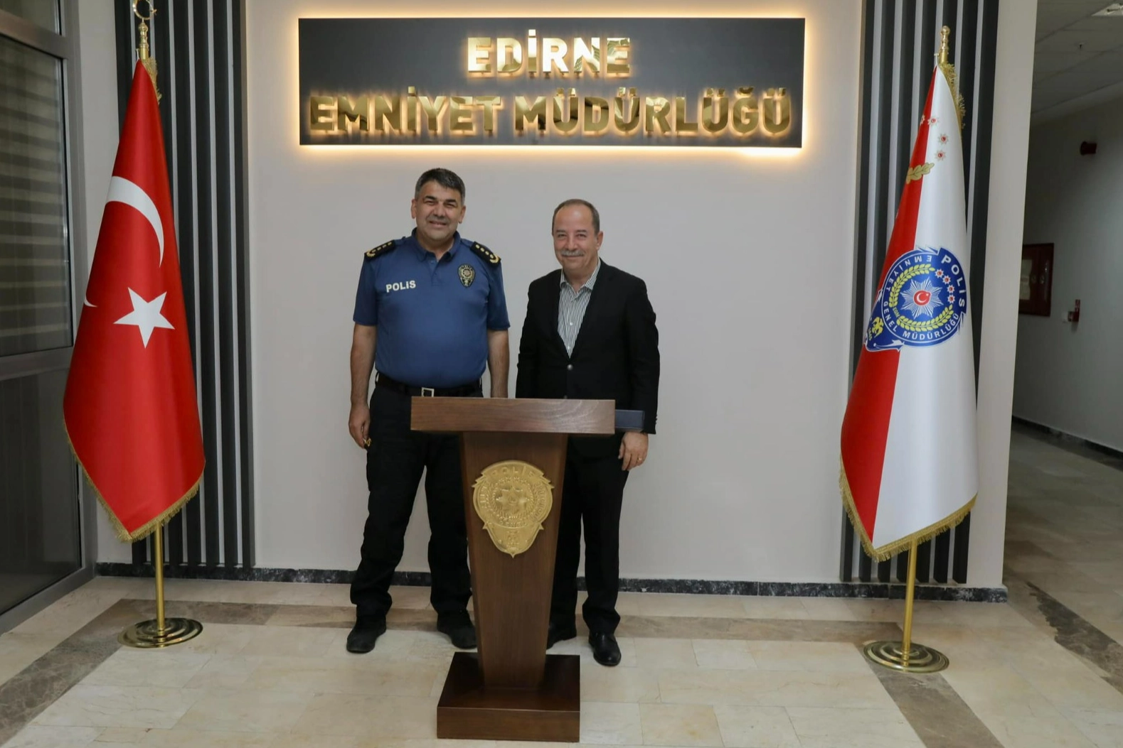 Edirne Belediye Başkanı Recep Gürkan, 2 Ağustos'ta Resmi Gazete'de yayımlanan Emniyet Müdürleri Kararnamesi ile görevine atanan İl Emniyet Müdürü Onur Karaburun’u ziyaret etti.