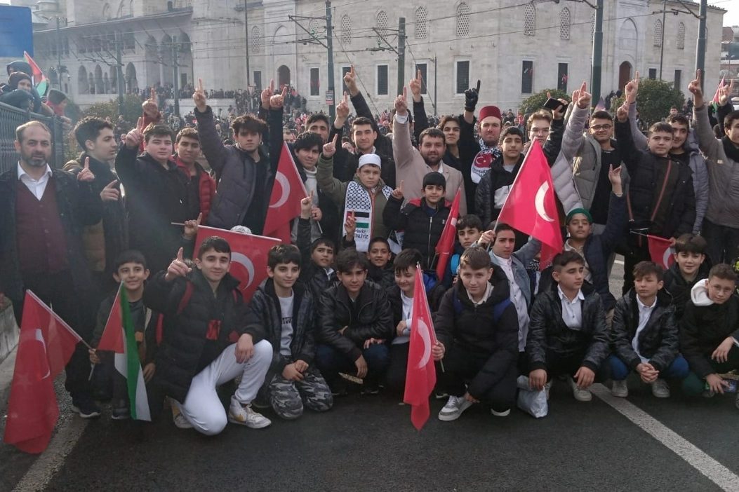 Yakın bir zamanda ibadete açılan Ayasofya Camii gibi İslâm kültür ve medeniyetinde önemli yeri olan eserleri gezme, yapılış hikâyelerini dinleme fırsatı yakalayan öğrenciler ayrıca "Şehitlere Vefa Filistin'e Destek" yürüyüşüne de katıldı.