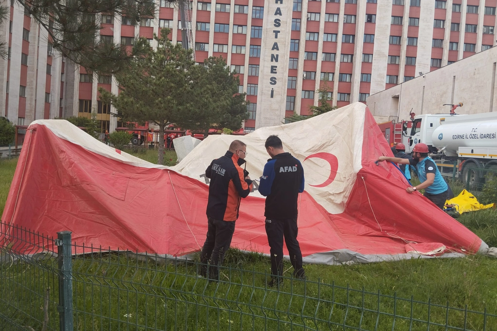 Yangından sonra gerekli görülen bölümlerdeki hastalar tahliye edildi. Hastanenin önündeki bahçeye ise sahra hastanesi kuruldu.
