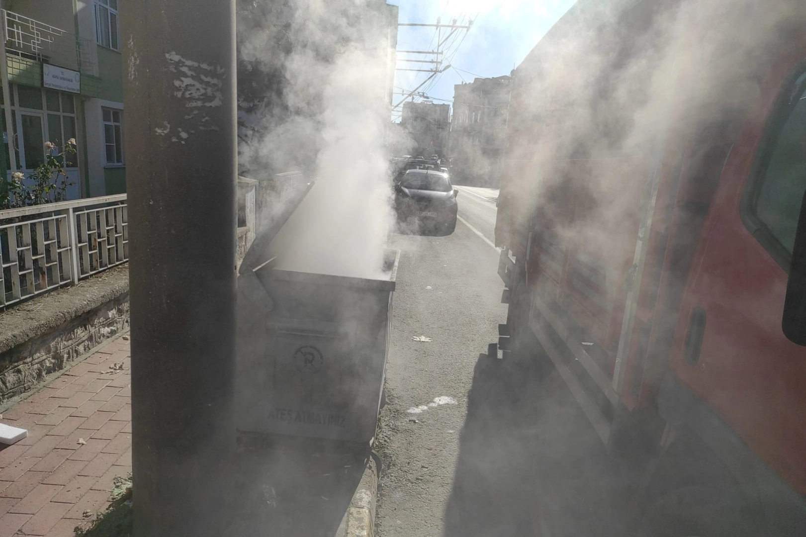 Edirne’nin Havsa ilçe merkezindeki Hacıisa Mahallesi yol üzerinde yer alan çöp konteynerinden dumanların yükseldiğini fark eden esnaflar, yangının çevredeki araçlara sıçramasını önlemek için harekete geçti.