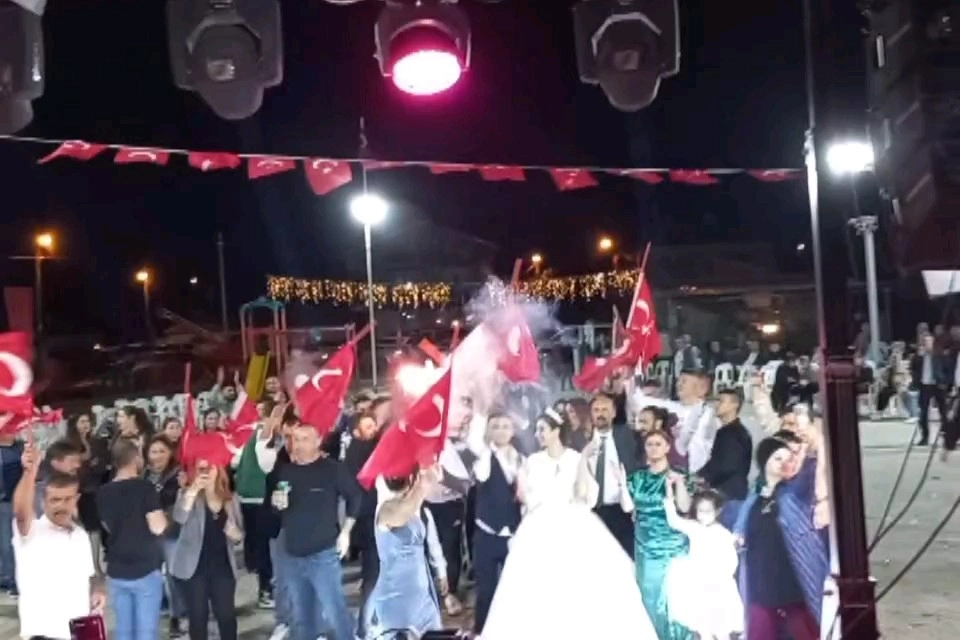 Havsa’nın Naipyusuf köyünde bir düğünde bayraklar ve marşlar eşliğinde Cumhuriyet Bayram’ı kutlandı.