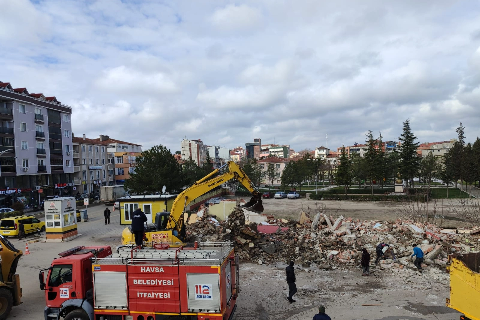 Yeni haftanın ilk gününde başlayan yıkım çalışmasını Havsa Belediye Başkanı Av. Aydın Balkan’da yerinde takip etti.
