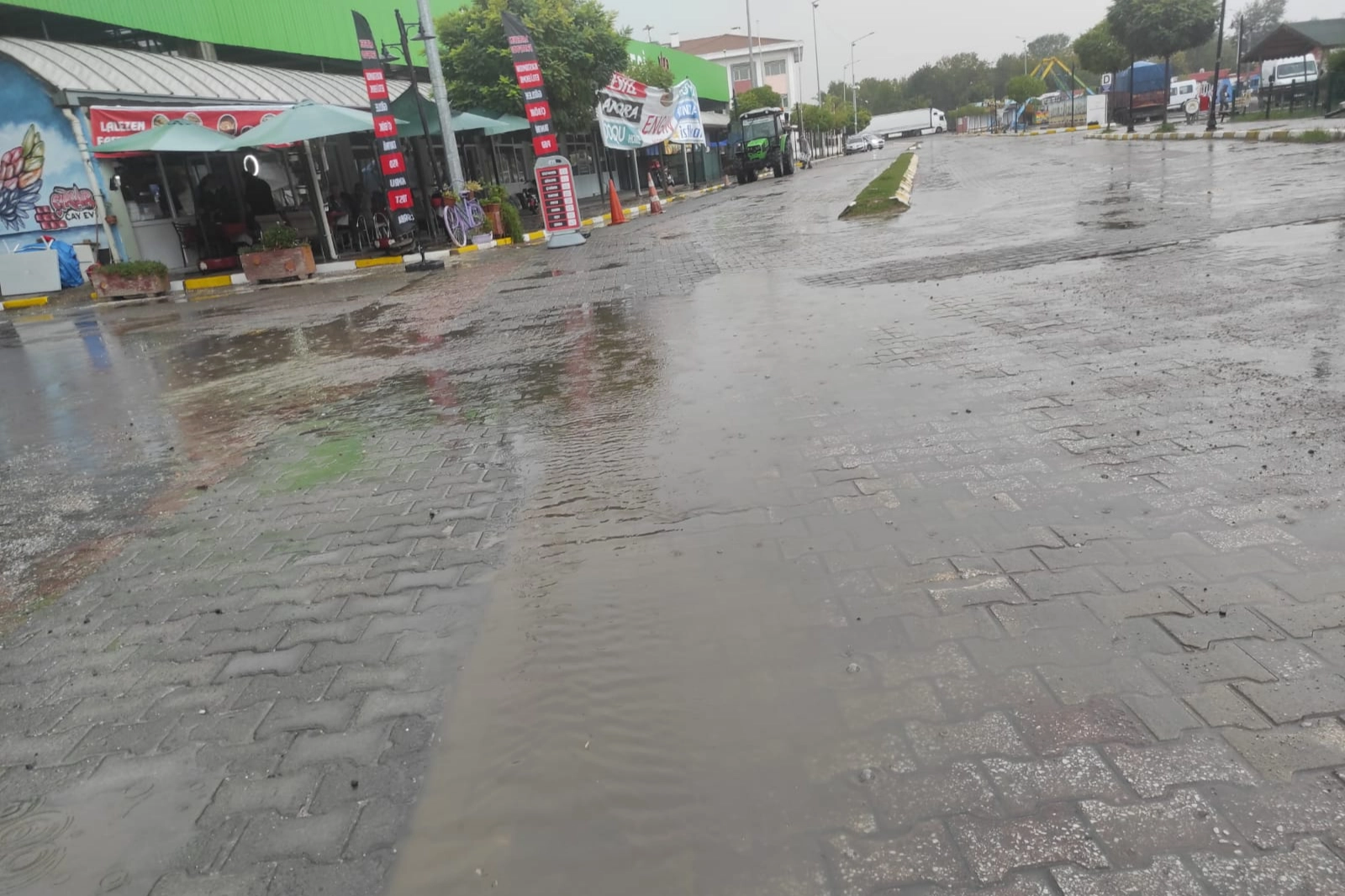 Yağmur nedeniyle cadde ve sokaklarda su birikintileri oluştu, bu durum sabah saatlerinde okullarına gitmek isteyen öğrenciler için zorluklar yarattı.