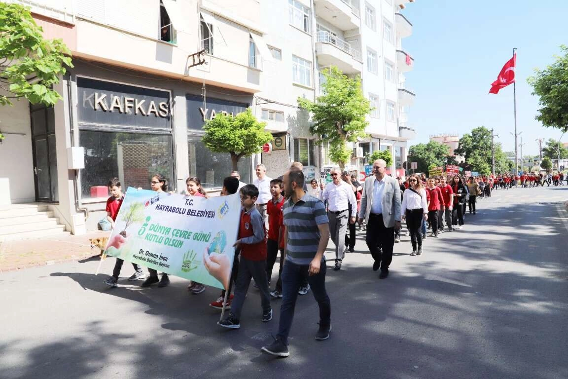 Alpullu Caddesi'nden başlayan çevre yürüyüşü, belediye hizmet binası bahçesinde sona erdi.