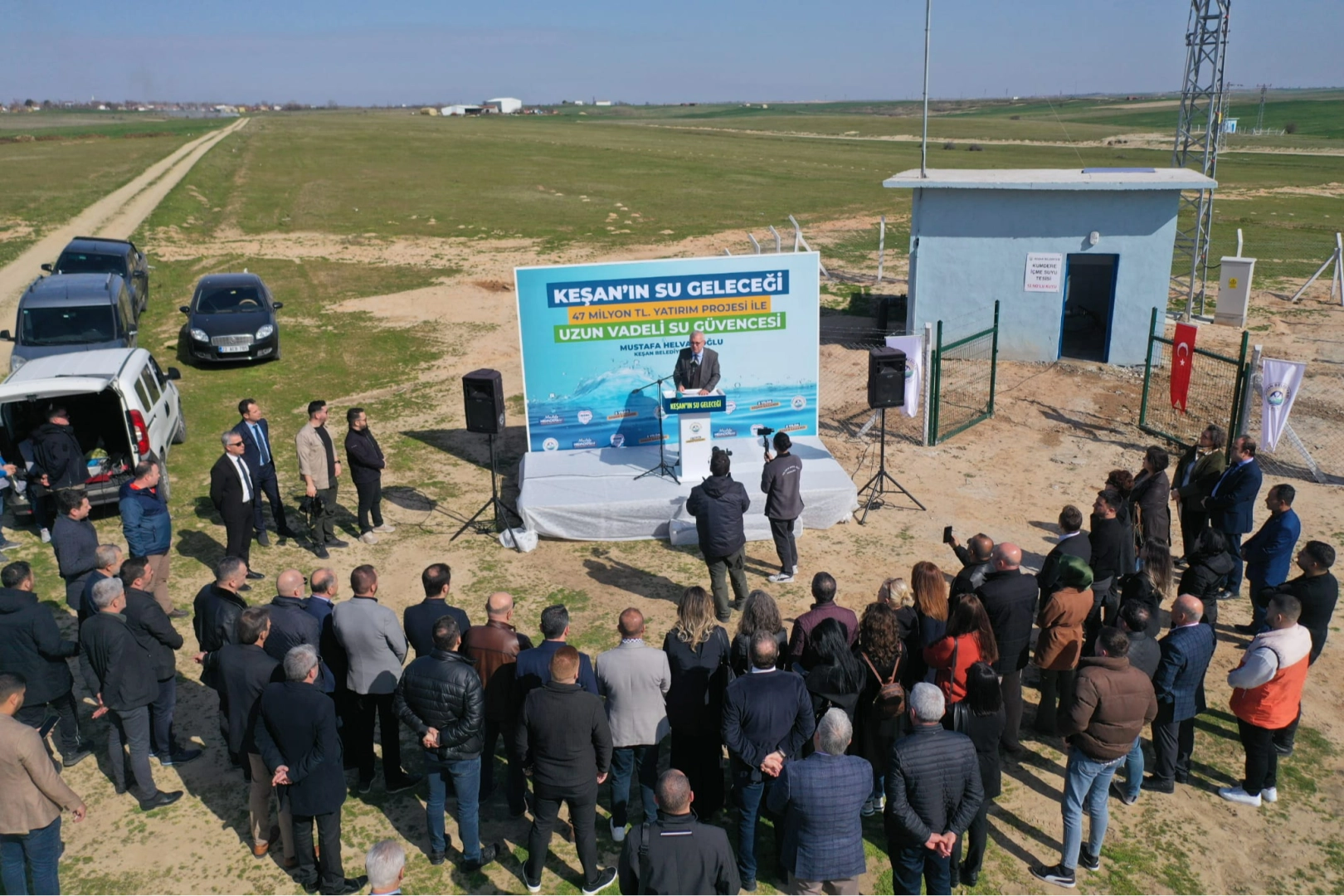 Kuraklık tehlikesi ile karşı karşıya kaldıklarını ifade eden Mustafa Helvacıoğlu, şunları söyledi: “Su rezervleri azalmıştı, verim düşüşleri kendini göstermişti. Uzun süredir dillendirdiğimiz bir tehlike, kapımızda belirivermişti. Bunun için bir önlem almalıydık. Keşan’ımızın geleceğine yönelik hayati bir adım atmamız gerekiyordu. Sizlere de söz verdik ve büyük uğraşlar neticesinde su geleceğimize yönelik önemli bir yatırım gerçekleştirdik. Su konusunda sadece Paşayiğit Mahallemizde sorun kaldı. Onu da organize sanayi bölgesiyle birlikte çözeceğiz. Su, enerji ve gıdanın öneminin farkındayız. Yaklaşık 50 milyon TL’lik bir yatırım ile Keşan’ımızın su geleceğini güvenliğe aldık. 2002’den sonra buraya gelen olmamış. Biz Keşan Belediyesi’ni dijital belediyeciliğe hazırladık, e-belediyeciliğe hazırladık. Cep telefonundan bu tesisi çalıştıracağız. Telefondan her şeyi takip edeceğiz. Cumhur İttifakı belediyeciliği olarak geleceği düşünüyoruz. Alternatif bir kaynak olarak tasarlanan Kumdere Tesisleri’mizde; 8 yeni içme suyu kuyusu, 5 km’lik enerji nakil hattı, 9 km’lik içme suyu terfi hattı, 3 adet son sistem trafo, 2 adet enerji kabini, 4 adet jeneratör, skada otomasyon sistemi, 4 adet terfi merkezi kurduk. Keşan’ın geleceği için gece gündüz çalışmalıyız. Vatandaşımızın geleceği için çalışmalıyız. 5 yılda yaptıklarımız 15 yıla bedel. Keşan yoğun bakımdaydı. Şimdi Keşanlı, Keşan ile gurur duyuyor ve bu başlangıç. Keşan’ın gelişimini kimse engelleyemeyecek. Güçlü belediye, güçlü meclis sloganı ile yola çıktık.”
