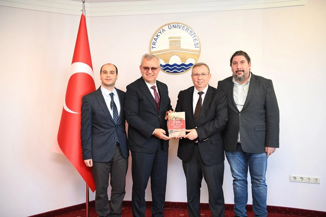 Helvacıoğlu, 17-18 Kasım tarihlerinde gerçekleşen 100. Yılında Her Yönüyle Keşan Sempozyumu dolayısıyla yayımlanan kitabı Tabakoğlu'na hediye etti.