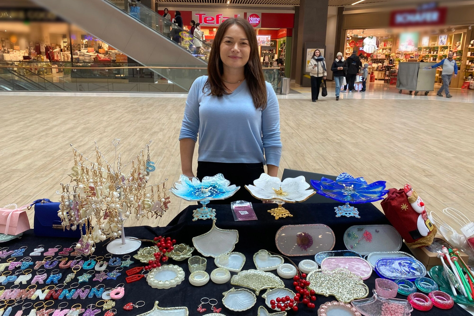 Yılbaşı süslemeleri, el yapımı dekoratif eşyalar ve kişiye özel tasarımların sergilendiği stantlar arasında, dekoratif ve süs eşyası standı sahibi Aslı Akyıldız’ın ürünleri dikkat çekti. Akyıldız, sanat tutkusunu işine dönüştürerek hem ziyaretçilerin beğenisini kazandı hem de yılbaşına özel bir atmosfer sundu.