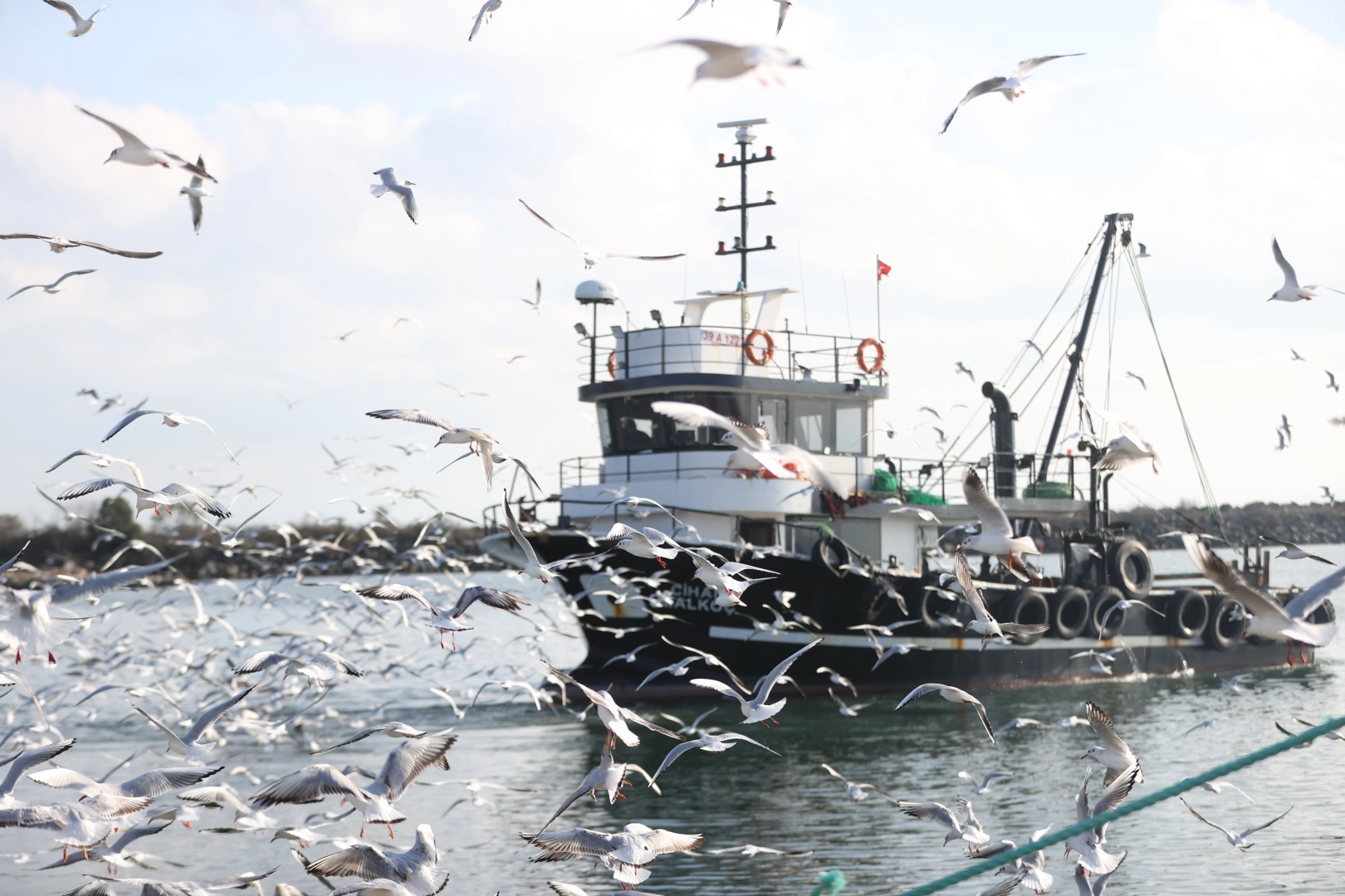 Limandan denize açılan balıkçı teknelerine eşlik eden martılar, balıkçı tayfalarının "davetsiz misafir" olarak nitelendirdiği görüntülere sahne oluyor.