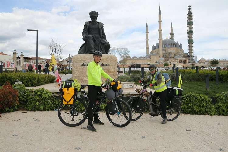 Kutsal topraklara ulaşmak için pedal çeviren Hirda ve Aljic, yaklaşık 600 kilometre katederek Edirne'ye ulaştı. Kapıkule'den Türkiye'ye giren bisikletçiler, kent merkezinde bir süre dinlendikten sonra Çanakkale'ye doğru yola çıktı.