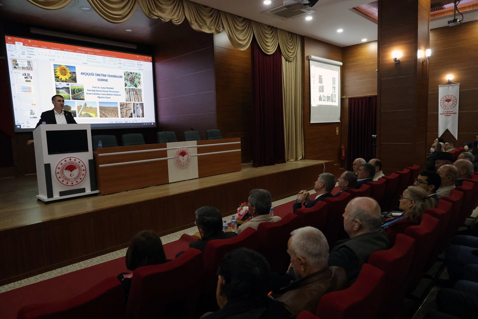 Ayçiçeği yetiştirme teknikleri hakkında da bilgi veren Önemli, sunumun ardından toplantıya katılan çiftçilerin sorularını cevapladı.
