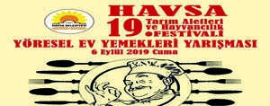 ilçemiz Belediyesi Kültür Etkinlikleri çerçevesinde 5-8 Eylül 2019 tarihleri arasında yapılacak olan 19. Tarım Aletleri ve Hayvancılık Festivali Kapsamında 4. Yöresel Ev Yemekleri Yarışması 06 Eylül 2019 Cuma günü yapılacak. Ev yemekleri, hamur işi ve tatlı yarışması olarak 3 etaptan oluşacak olan yarışmaya katılmak isteyenlerin 28 Ağustos 2019 Çarşamba günü mesai bitimine kadar ilçemiz Belediyesi Yazı işleri birimine kayıtlarını yaptırmaları gerekmektedir. irtibat: 0284 336 10 09