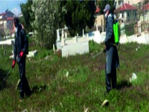 ilçemiz Belediyesi Park bahçeler ekipleri tarafından ilçemizde bulunan tüm mezarlıkların bakımı ve temizliği yapılarak bayrama yetiştirilmeye çalışılıyor. Kurban Bayramı münasebeti ile bir hayli artacak olan mezarlık ziyaretlerinde, vatandaşların ziyaretlerini rahatlıkla gerçekleştirebilmesi için ekipler çalışmaları Bayram öncesine yetiştirebilmek için yoğun çaba sarfediyor. ilçemiz Belediyesi Fen işleri Müdürlüğü ekipleri, ilçe genelindeki cadde ve sokaklarda Bordür boyama çalışmaları hız kesmeden devam ediyor. Kışın yağmurdan yazın ise sıcaklardan etkilenip boyaları kalkan ve silinen cadde ve sokaklardaki bordür taşları boyanarak yenileniyor. Sarı ve beyaz renkte boyanan bordür ve kaldırım taşları araç sürücüleri için uyarıcı olurken, cadde ve sokakların görünümüne canlılık getirmesinin yanında, temiz bir görüntü oluşturuyor.
