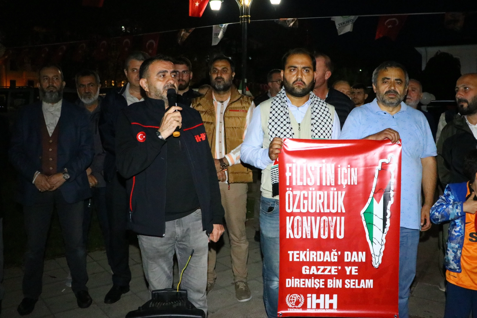 İnsan Hak ve Hürriyetleri (İHH) İnsani Yardım Derneği Tekirdağ Şubesince Filistin'e destek amacıyla oluşturulan araç konvoyu Adana'daki İncirlik Üssü'ne gitmek üzere yola çıktı. İHH'nın öncülüğünde bir araya gelen STK'ler ve vatandaşlar, Valilik önünde toplandı. Katılımcılar İsrail aleyhinde sloganlar atarak, Gazze'ye yönelik saldırılara tepki gösterdi.