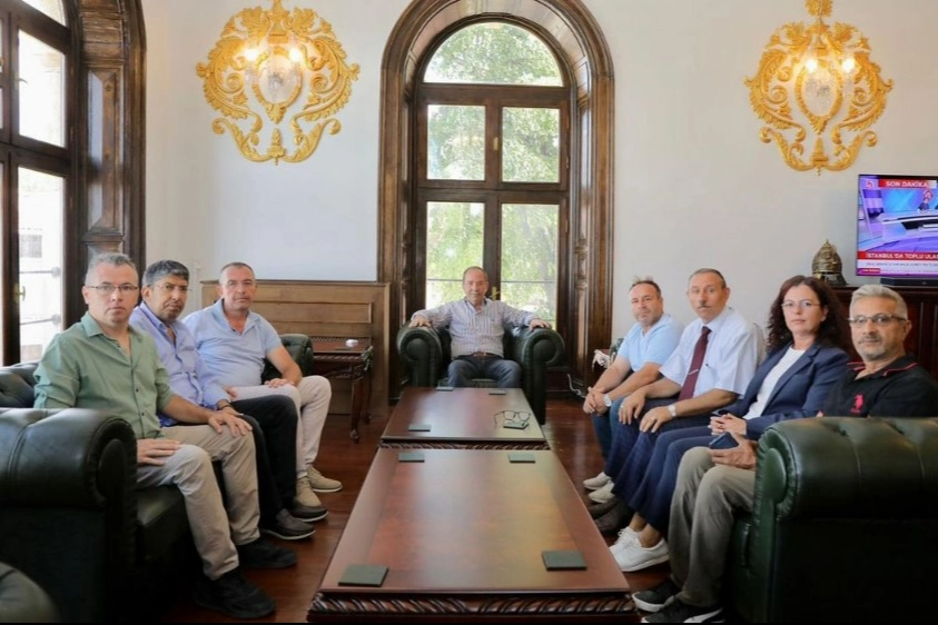 Edirne İnşaat Sanatkarları Esnaf Odası Başkanı Tezcan Liznak ve yönetim kurulu üyeleri Edirne Belediye Başkanı Recep Gürkan'ı makamında ziyaret etti.