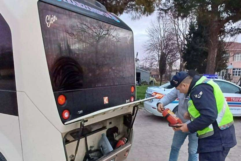 Edirne’nin İpsala ilçesi Kocahıdır Ortakolu'nda eğitim gören öğrencileri taşıyan okul servis araçları, Edirne İl Jandarma Komutanlığı trafik jandarması timleri tarafından kontrol ve denetime tabi tutuldu.
