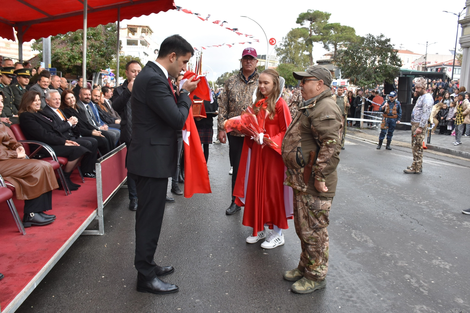 Cumhuriyet Meydanı'nda Atatürk Anıtı’na çelenk sunulmasıyla başlayan törenlerde, saygı duruşu ve İstiklal Marşı'nın ardından coşkulu anlar yaşandı.