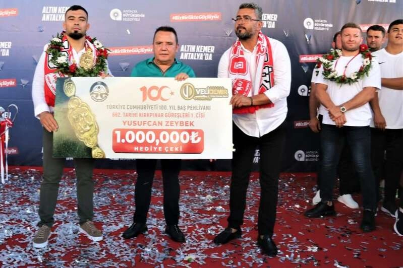 662. Tarihi Kırkpınar Yağlı Güreşleri'nde başpehlivanlığı kazanan Yusuf Can Zeybek için memleketi Antalya'da karşılama töreni düzenlendi. Zeybek araç konvoyuyla vatandaşları selamlayarak şehir turunun ardından Büyükşehir Belediyesi önündeki tören alanına geldi. Törene, Tarihi 661. Kırkpınar Yağlı Güreşleri’nin şampiyonu Başpehlivan Yusuf Can Zeybek, ikincisi İsmail Balaban, Adil Kıvrak, Hüseyin Coşkun, Mustafa Yıldız antrenörler ve diğer sporcular katıldı.