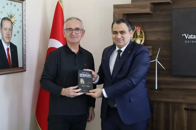 Muammer İşbilen, kitabını Kaymakam Balaban’a makamında sundu. Kaymakam Balaban, takdim için İşbilen’e teşekkür ederek başarılarının devamını diledi.
