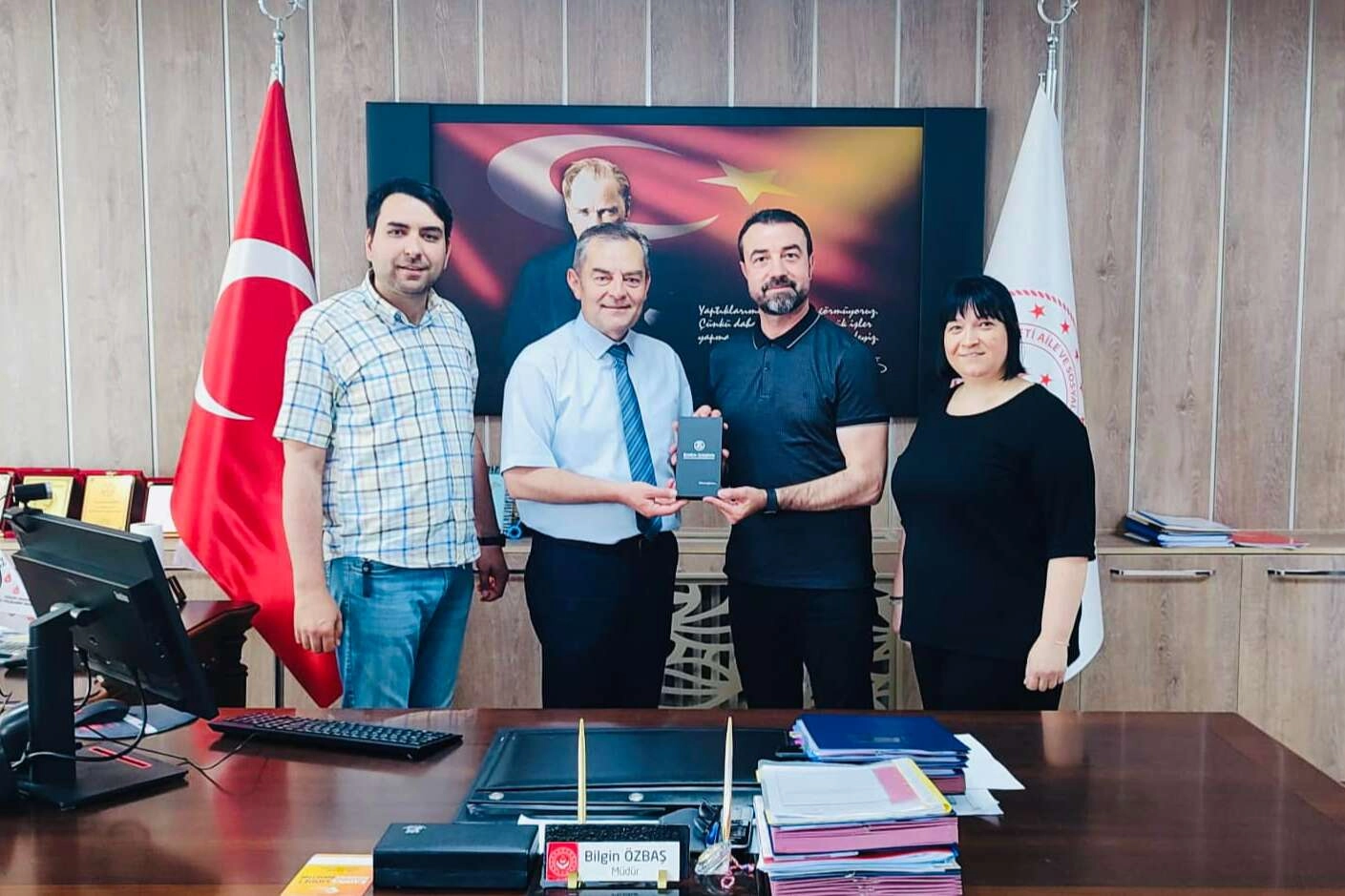 Hak-İş Konfederasyonu Edirne İl Başkanı ve Öz sağlık İş Sendikası Edirne Şube Başkanı Emre Promet, Öz sağlık İş Sendikası Edirne Şube Başkan Yardımcısı İsmail Kurtuluş ve ÇEKOM temsilcisi Burcu Promet ile birlikte, Aile ve Sosyal Hizmetler İl Müdürü Bilgin Özbaş’ı makamında ziyaret ederek işçilerin sıkıntı ve taleplerini ilettiler.