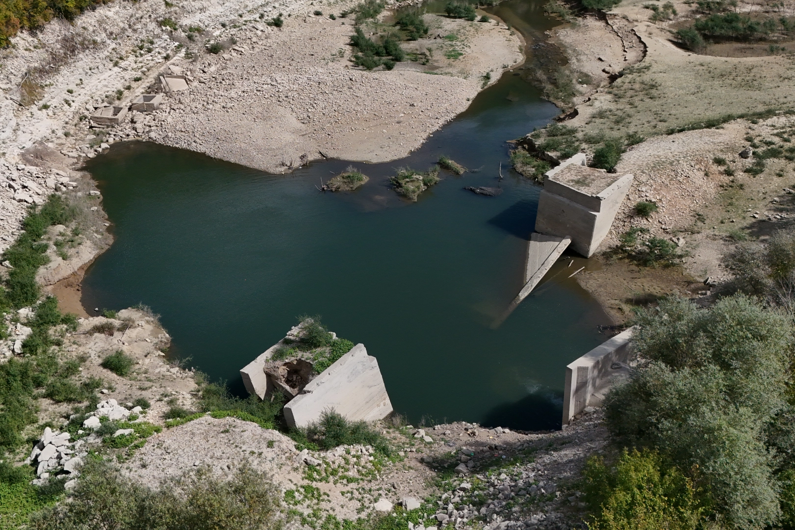 Aksicim köyü sakinlerinden muhtar azası Coşkun Duran, AA muhabirine, yağışların az olması ve kuraklık nedeniyle barajın su seviyesinin azaldığını söyledi.