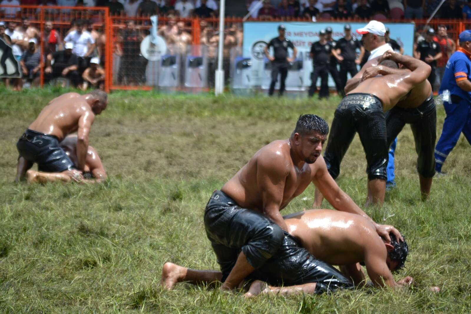 662. Tarihi Kırkpınar Yağlı Güreşleri, Edirne Sarayiçi Er Meydanı'nda ikinci gün müsabakalarında 53 başpehlivan mücadele etti.