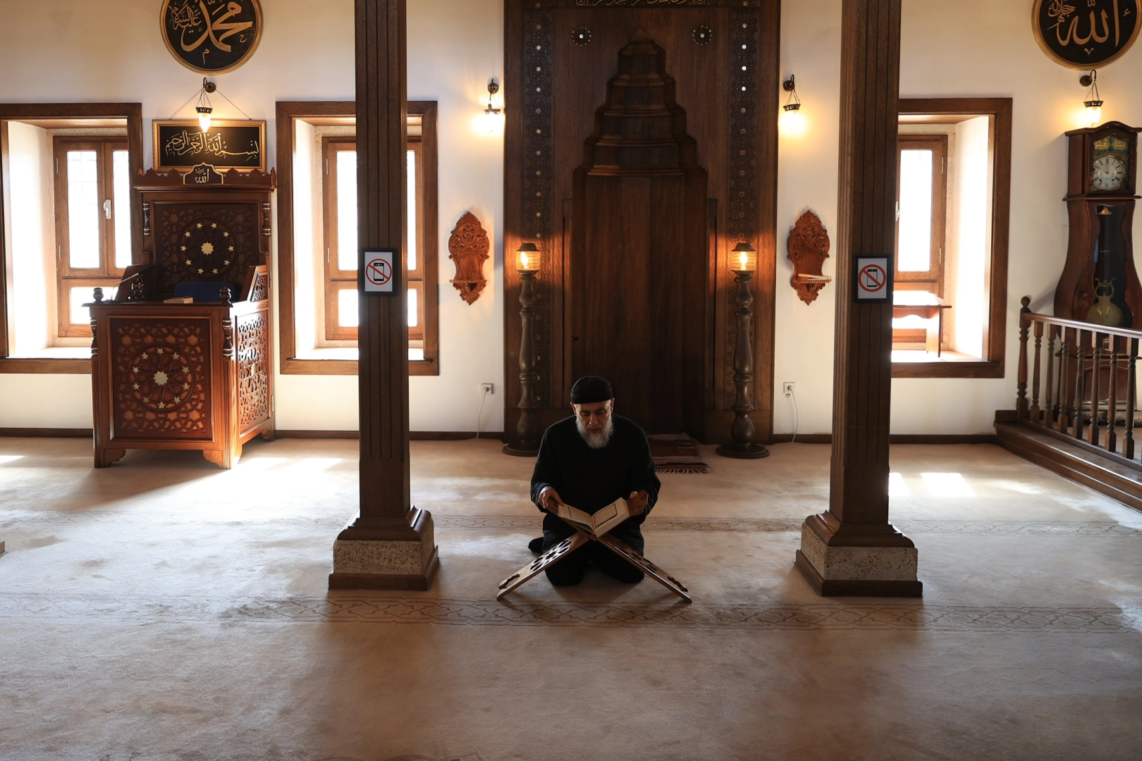 Hasan Sezai Camisi'nde itikafa girenler, gün boyunca Kur'an-ı Kerim ve dini kitaplar okuyup namaz kılıyor.