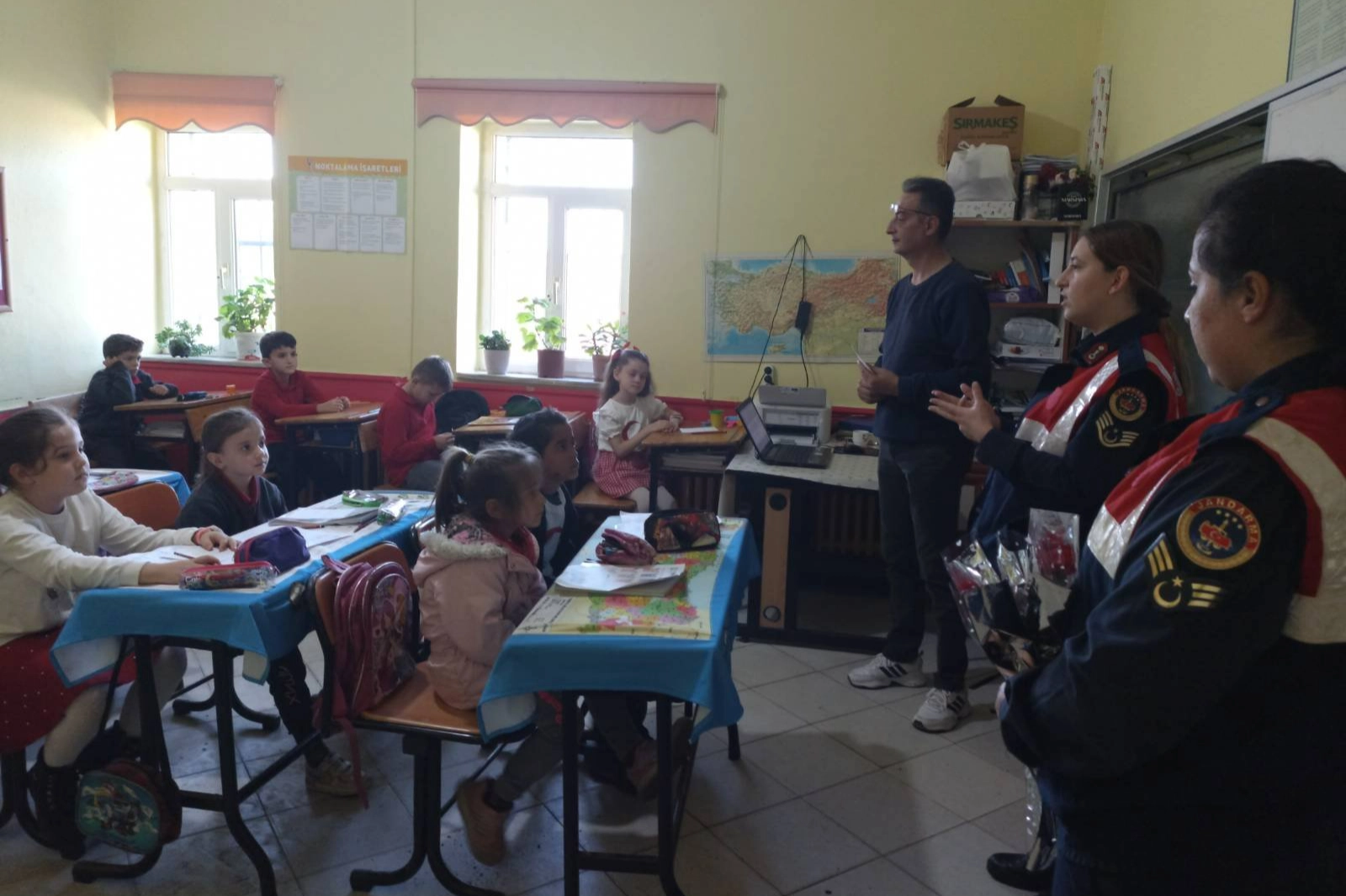 Edirne İl Jandarma Komutanlığı, Aile İçi Şiddetle Mücadele ve Çocuk Kısım Amirliği tarafından Edirne’nin Uzunköprü ilçesi Elmalı İlkokulu öğrencilerine, çocuklarımızın suça sürüklenmemesi zararlı alışkanlıklardan korunması, 112 ihbar hattının doğru kullanılması, çocuklara jandarma ve vatan sevgisinin kazandırılması amacıyla anasınıfı öğrencilerine bilgilendirme çalışması yaptı.