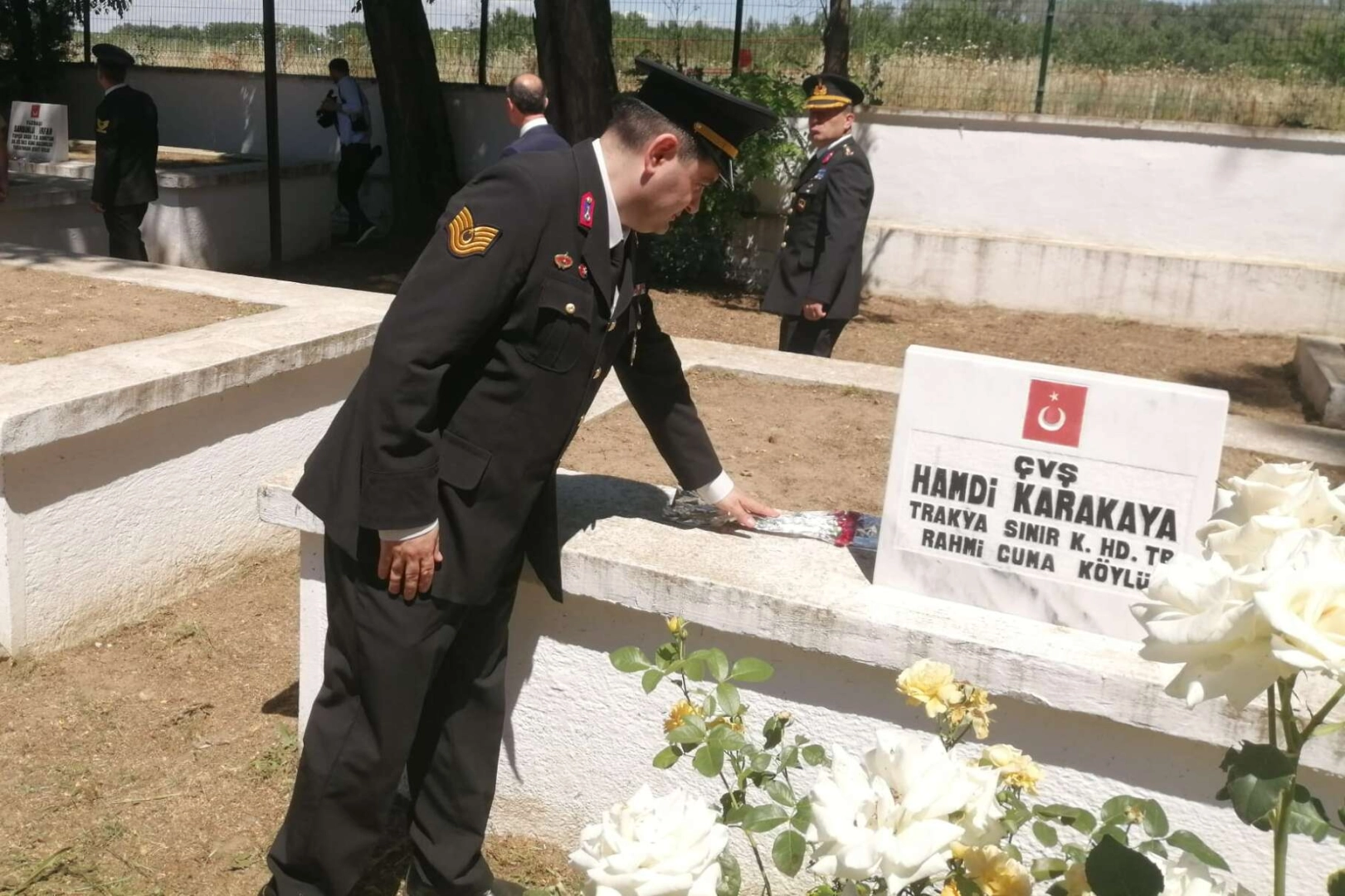 Edirne Vali Yardımcısı Sıdkı Zehin, İl Jandarma Alay Komutanı Jandarma Kıdemli Albay Suat Dönmez ve beraberindekiler şehit mezarlarını tek tek ziyaret ederek karanfil bıraktılar ve dualar okudular.