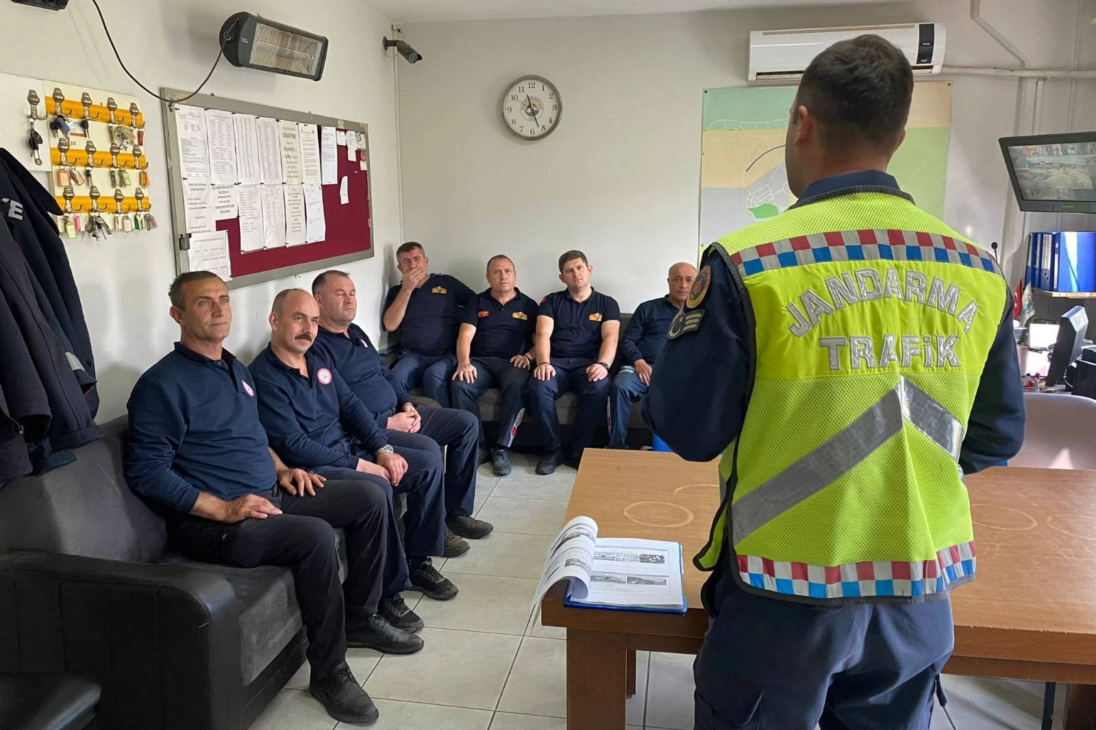 Keşan Trafik Jandarması Timleri, Keşan Belediyesi İtfaiye Müdürlüğü personeline "geçiş üstünlüğü, geçiş hakkı, emniyet kemeri kullanımının önemi, hız kuralları, trafik kazaları, park ve park etme kuralları, ve alkollü araç kullanımı" gibi konularda bilgilendirme çalışması gerçekleştirdi.