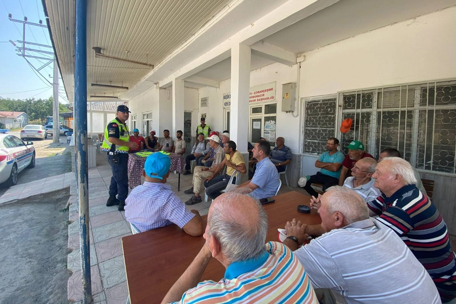 Edirne İl Jandarma Komutanlığı Trafik Jandarması Timleri, köy sakinlerine temel trafik kuralları, reflektör, kask, yelek ve emniyet kemeri kullanımı gibi konularda eğitim verdi. Ayrıca, traktörlerin güvenli kullanımını sağlamak amacıyla ROPS (Devrilme Koruma Sistemi) ve reflektör kullanımının önemi vurgulandı.