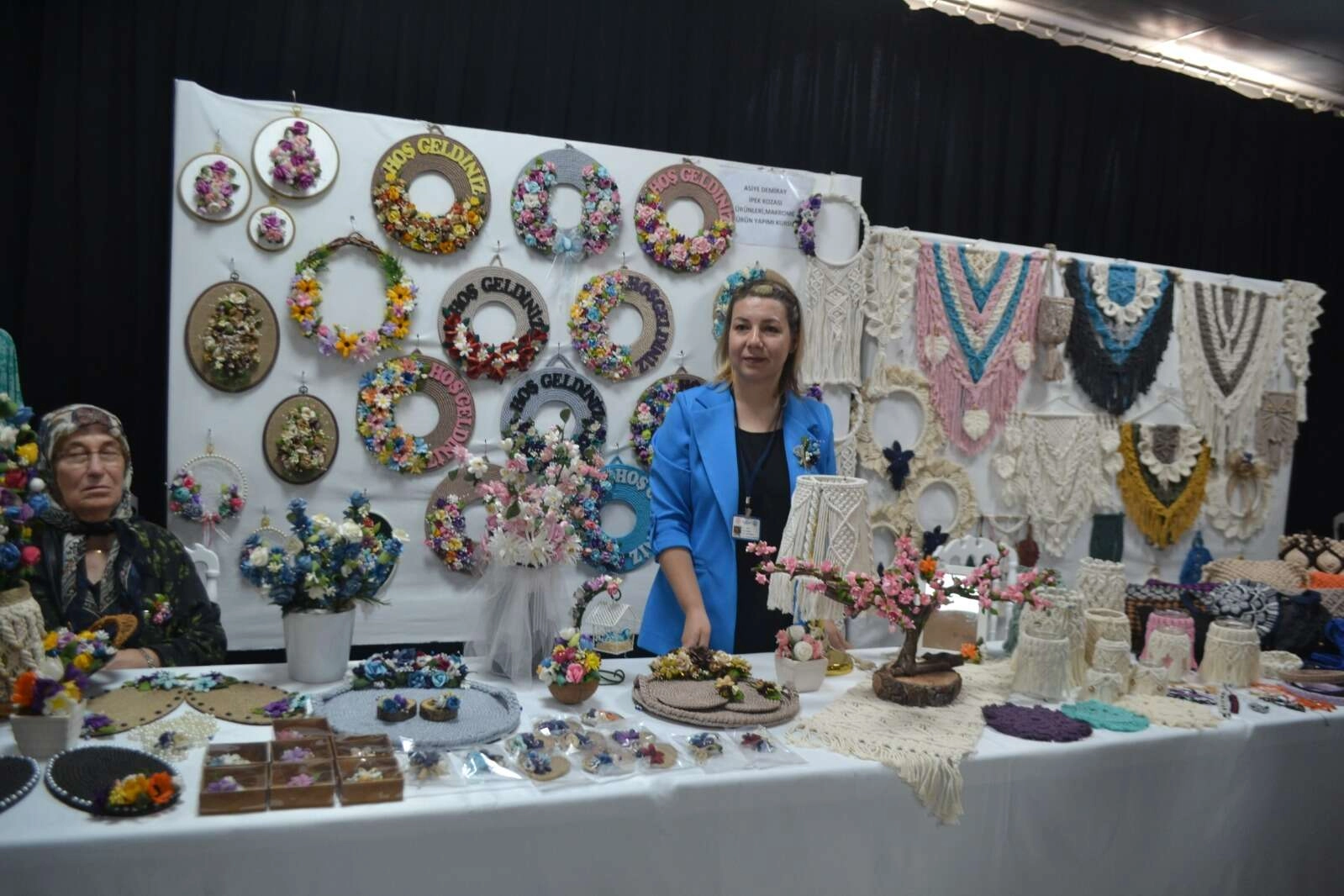 Edirne Belediyesi Kadın ve Aile Hizmetleri Müdürlüğü ile Edirne Halk Eğitim Müdürlüğü arasında imzalanan Hayat Boyu Öğrenme protokolü kapsamında eğitim gören kadın kursiyerler, el emeklerini sergilediler.
