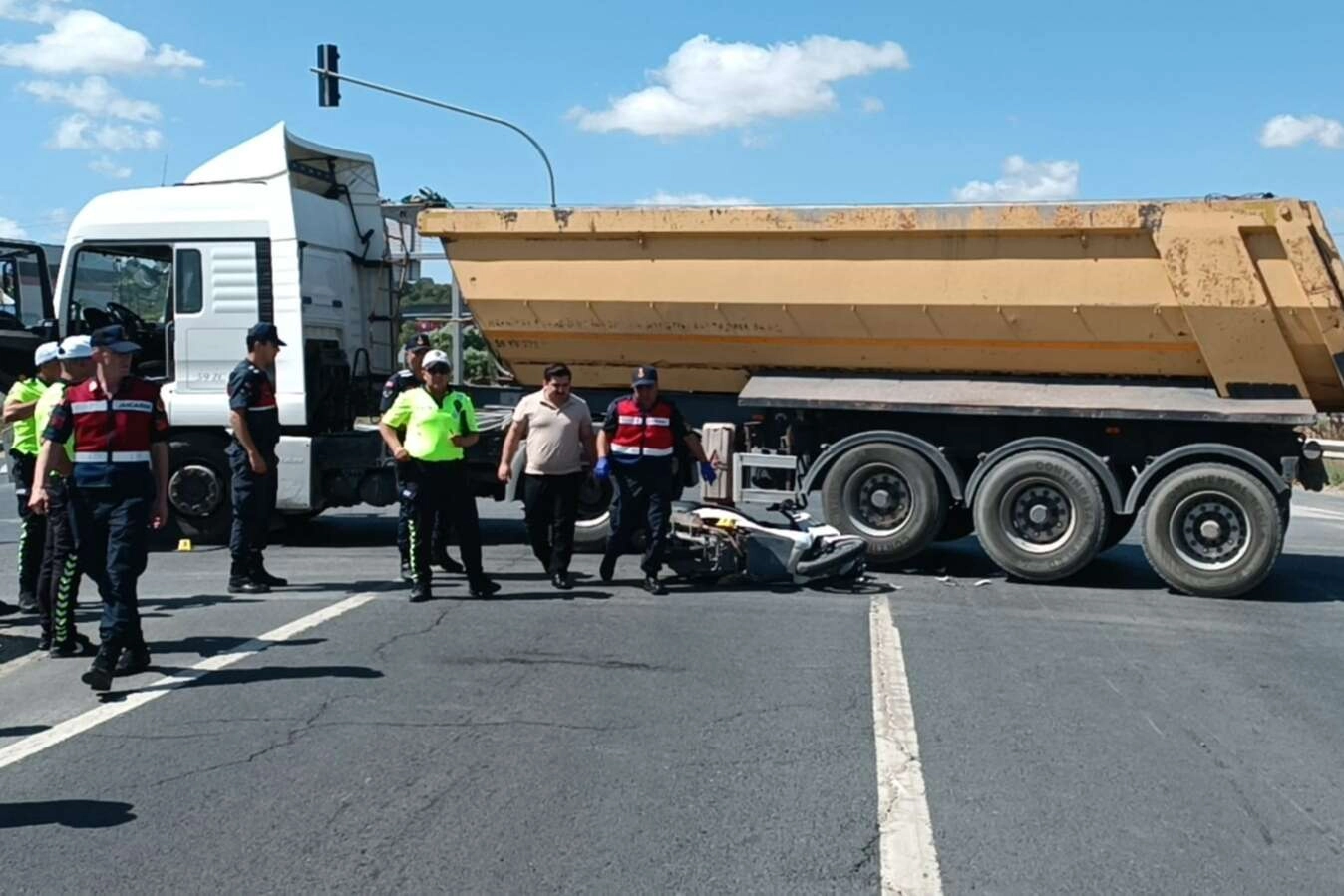 Alınan bilgiye göre, Y.İ. yönetimindeki motosiklet, Çerkezköy - Çorlu kara yolu Veliköy Mahallesi yakınlarında T.D'nin kullandığı 59 ** 142 plakalı hafriyat kamyonuyla çarpıştı.