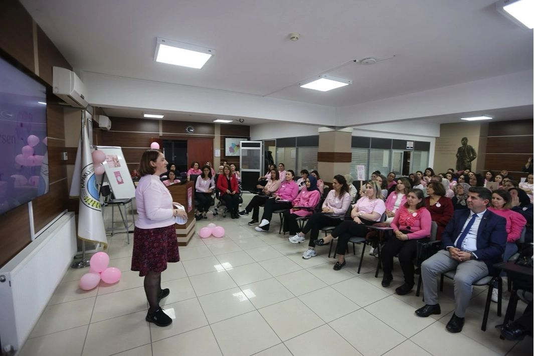 Kadın ve Aile Hizmetleri Müdürlüğü ile İnsan Kaynakları ve Eğitim Müdürlüğü iş birliğinde düzenlenen programa kadın personel katıldı. Eğitimde, meme kanserinde erken teşhisin önemi, doğru beslenme alışkanlıkları ve sağlıklı yaşam konularında bilgilendirmeler yapıldı.