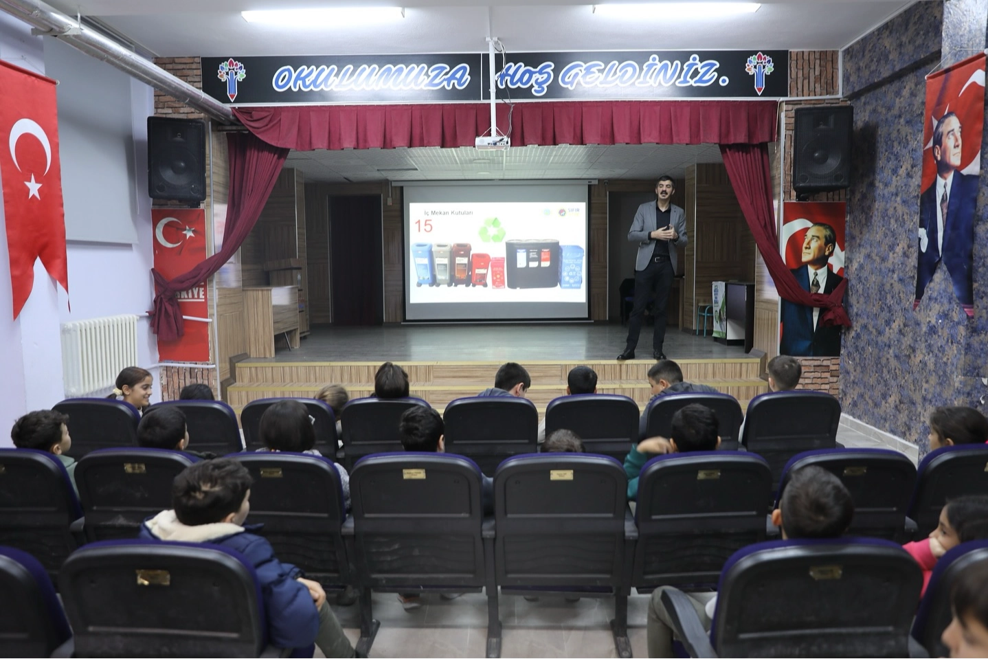 Bu kapsamda, Büyükşehir Belediyesi İsmet İnönü İlkokulu’nda düzenlenen eğitim programında, öğrencilere atık yönetimi, geri dönüşümün önemi ve çevre dostu yaşam alışkanlıkları hakkında bilgiler verildi.