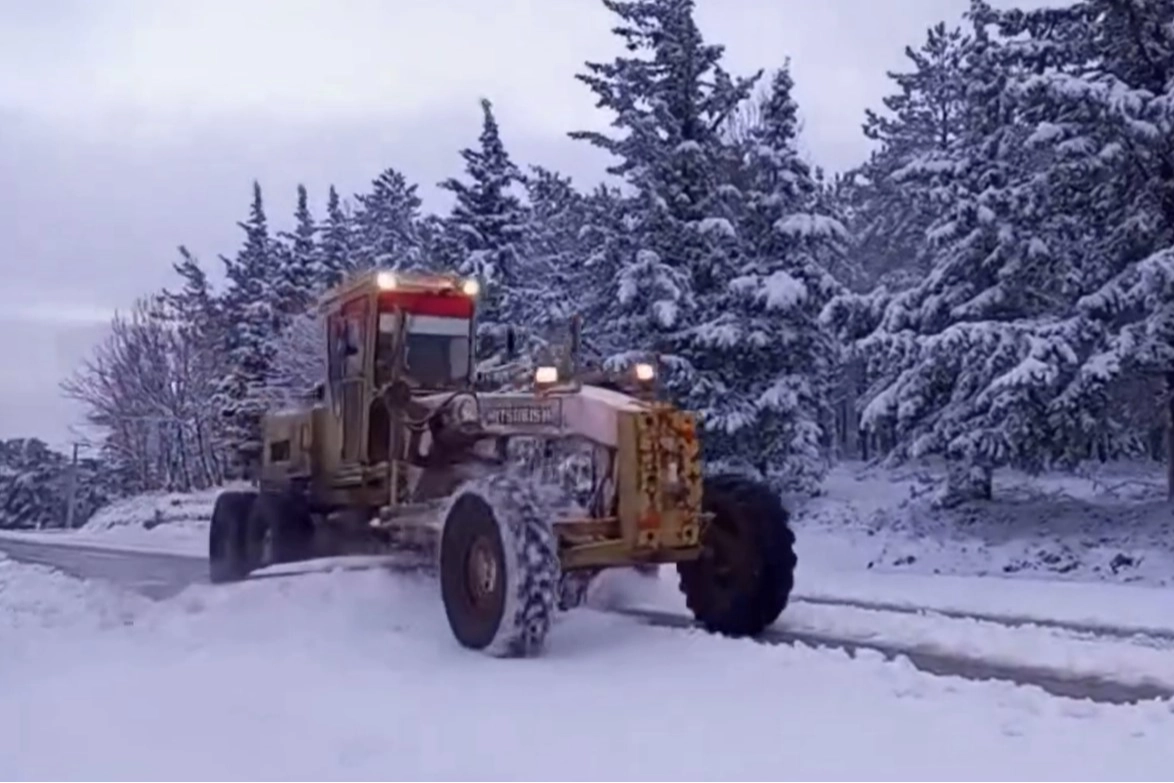 Ekipler, kar yağışının ardından buzlanmayı önlemek amacıyla buz çözücü solüsyon ile çalışmalarını sürdürüyor.