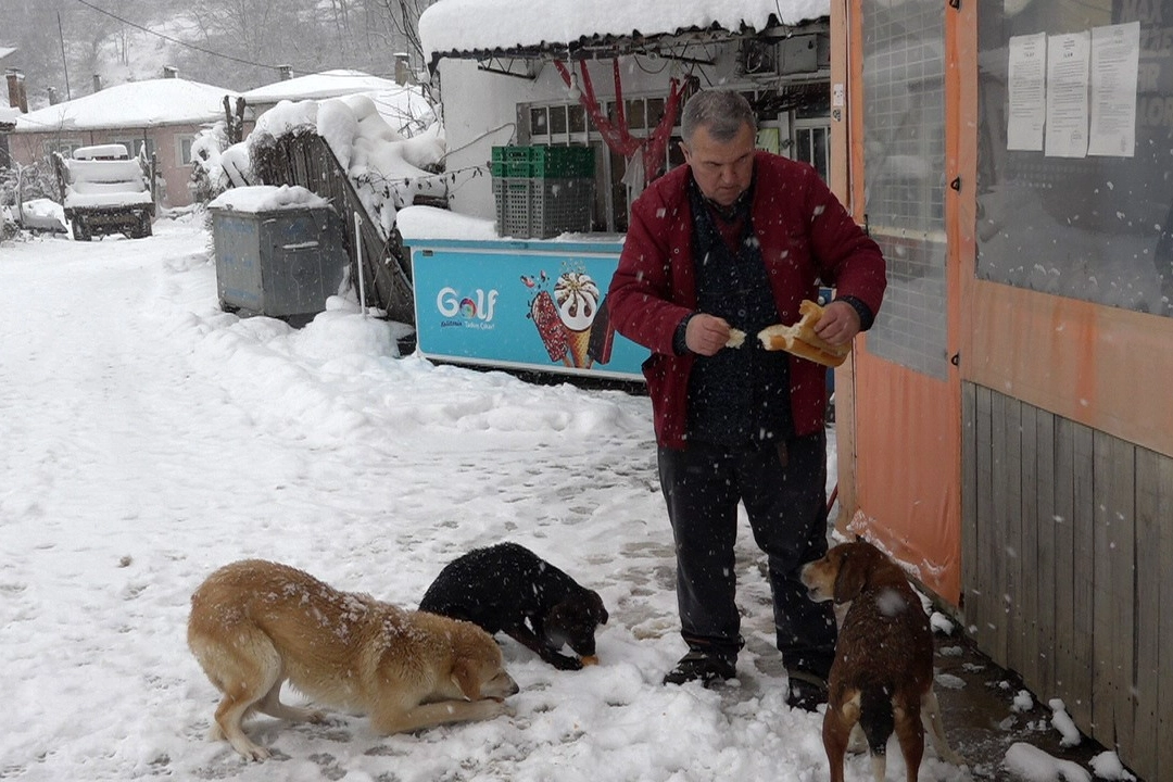 Kırklareli'nin yüksek kesimlerinde kar yağışı etkisini sürdürüyor. Yağışla birlikte köylerde sokakta yaşayan köpekler de olumsuz etkileniyor. Bununla birlikte Dereköy köyünde bakkallık yapan Ali Onbaşıoğlu, soğuk havalarda köyde bulunan köpekleri besliyor. Kar yağışının yaklaşık 4 gündür devam ettiğini söyleyen Onbaşıoğlu, “4 gündür kar yağışı devam ediyor. Her sene böyle olmazdı, bu sene daha çok kar yağdı” dedi. Her gün sokakta yaşayan hayvanları beslediğini anlatan Onbaşıoğlu, sabahları 25-30 adet ekmek verdiğini ifade etti. Onbaşıoğlu, kar yağışının 2025 yılı için bereket olduğunu da aktardı. Öte yandan kar kalınlığı yer yer 50 santimetreye kadar ulaştı.