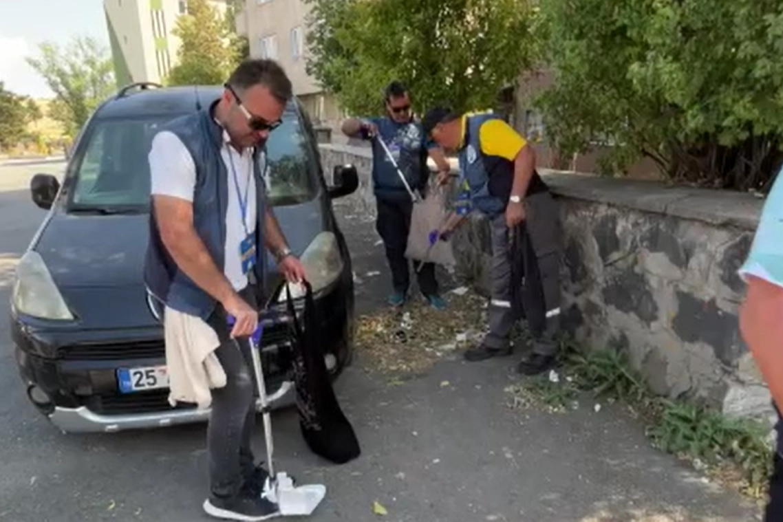 Erzurum Büyükşehir Belediyesi İtfaiye Kavşağı'nda 6 kişilik ekiple başlayan etkinlikte, katılımcılar, topladıkları plastikleri torbalarında biriktirdikten sonra çöp konteynırlarına boşalttı.