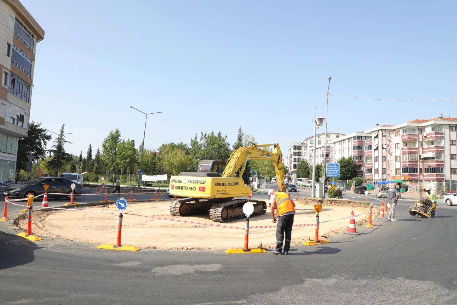 Kırklareli Belediyesi Fen İşleri Müdürlüğü ekipleri İstasyon Mahallesi Sancaktar Caddesi'ndeki kavşakta çalışmalarını sürdürüyor.