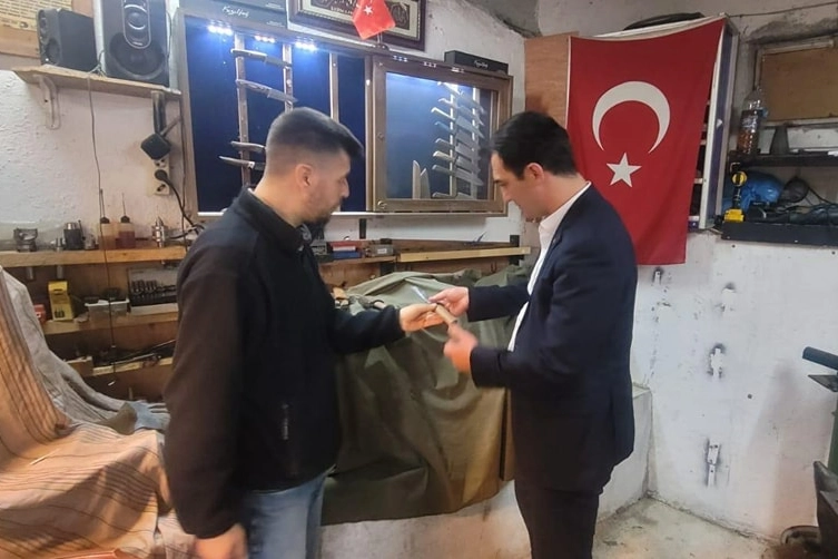 Lalapaşa Kaymakamı Okan Ayaz Çömlekakpınar köyümünde el yapımı bıçak atölyesi bulunan Kültür ve Turizm Bakanlığı Geleneksel El Sanatçısı Samet Yılmaz'ı ziyaret etti.