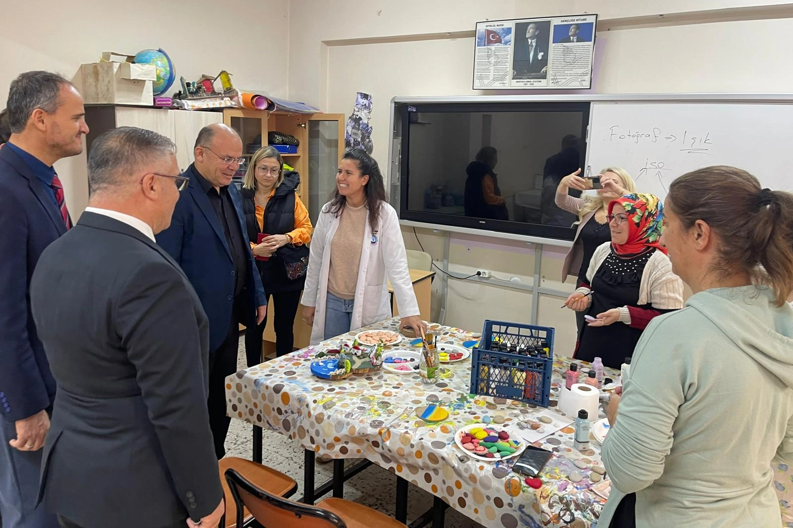 Köken, merkezde açılan kurslarda eğitim alan kursiyerlerle sohbet etti, yaptıkları çalışmalar hakkında bilgi aldı.