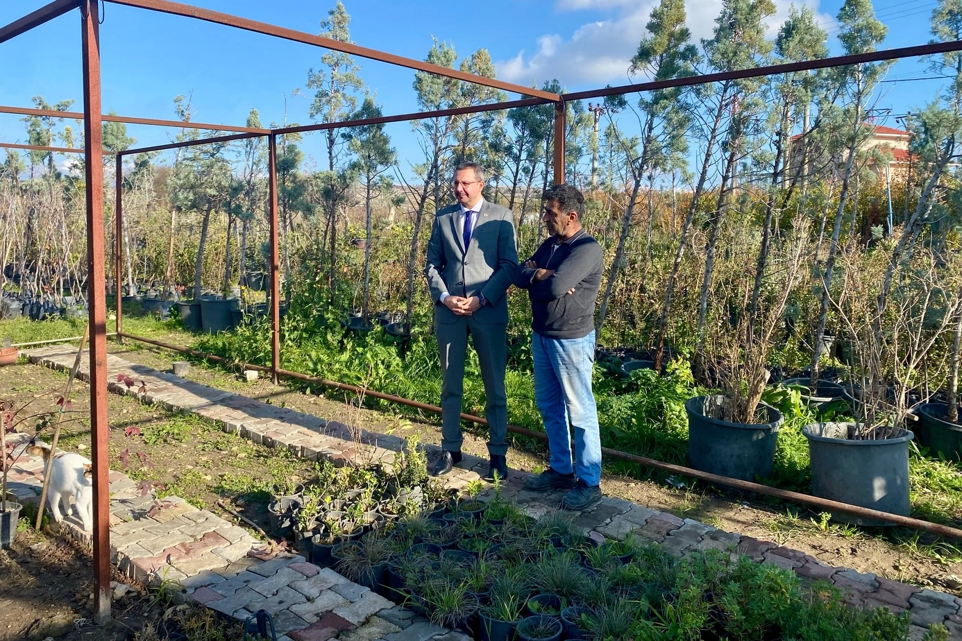 Kırklareli’nin Pınarhisar ilçesinde Kaymakam Enver Özderin, Kaynarca Beldesi’nde bulunan bir peyzaj işletmesine ziyarette bulundu. Ziyaret kapsamında Kaymakam Özderin, işletme sahibi Hasan Uz’dan fidancılık faaliyetleri ve yürütülen çalışmalar hakkında bilgi aldı.