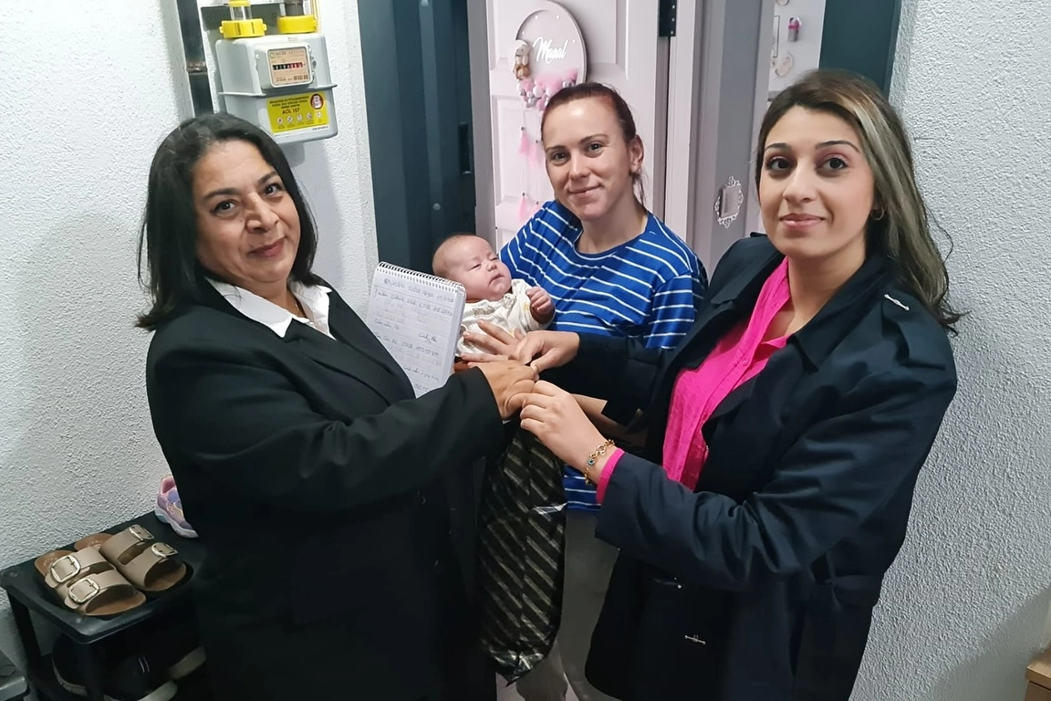 Bu kapsamda Meltem ve Uğur Çatkara çiftinin oğlu Uras, Gülben ve Berkay Can çiftinin kızı Zeynep Güneş, Emine ve Fevzi Koçak çiftinin oğlu Doruk için sıcak bir karşılama gerçekleştirildi.