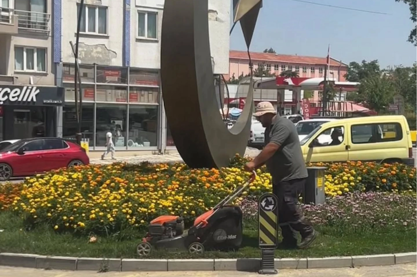 Cumhuriyet Meydanı’ndaki çim alan biçildi.