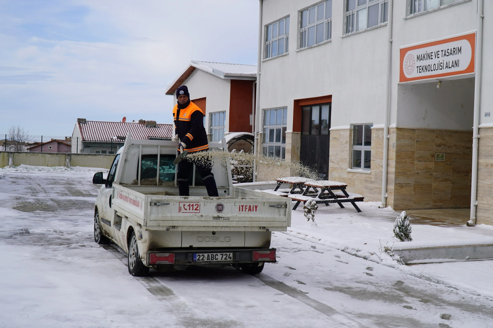 Keşan Belediyesi tarafından başlatılan karla mücadele çalışmaları her noktada başarılı bir şekilde gerçekleştiren ekipler okullar için ayrıca mesai verdi.