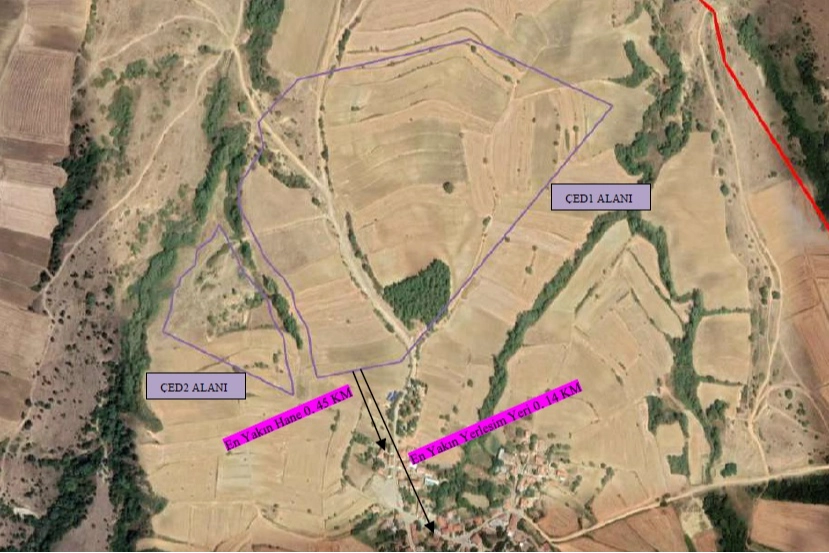 LALACIK KÖYÜNE 450 METREProjenin ÇED alanı, Lalacık köyüne 450 metre, köye bağlı olan en yakın meskene ise 140 metre mesafede bulunuyor. Alana 50 metre mesafede de samanlık yer alıyor. ÇED alanı içerisinde ayrıca sürekli akış gösteren Sığıryatağı deresi de bulunuyor.