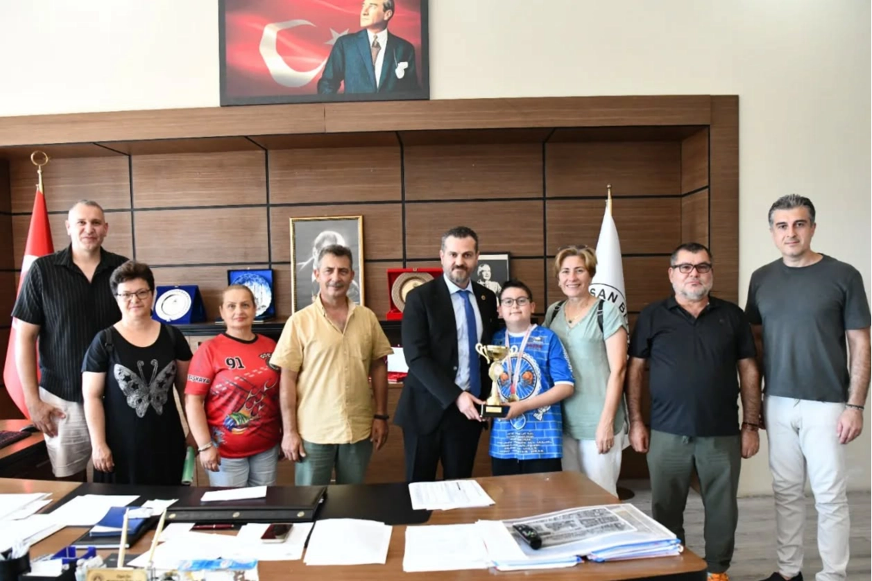 Belediye Başkan Vekili Rasim Ergene, ziyarette, DOÇEK'in Edirne'de düzenlenen 2025 Kurum ve Kuruluşlar Arası Voleybol Turnuvası'nda birinci olduğunu söyledi.