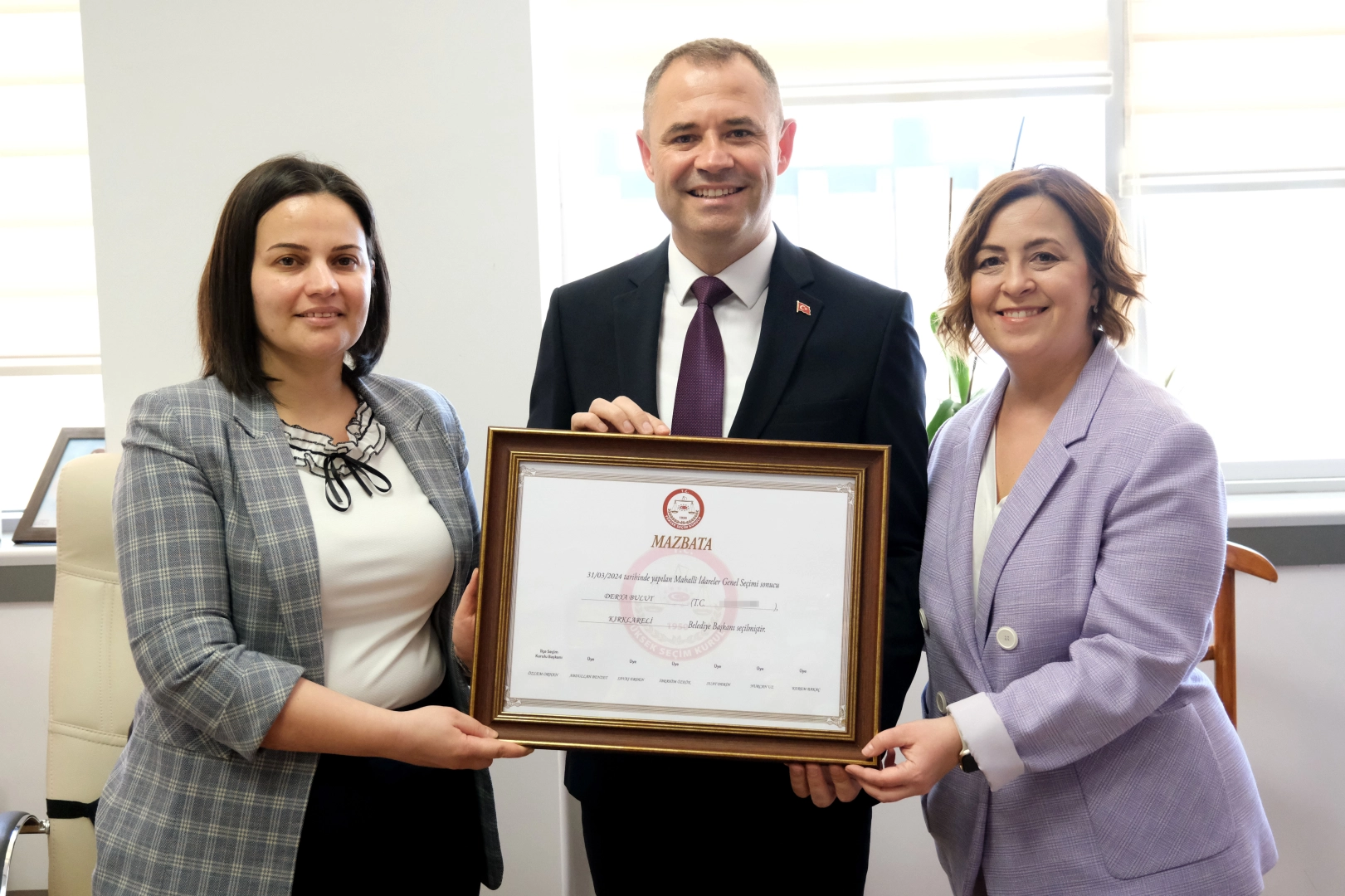 Kırklareli Adliyesi'nde düzenlenen törende Merkez İlçe Seçim Kurulu Başkanı hakim Özlem Orhan, Bulut'a mazbatasını takdim etti.