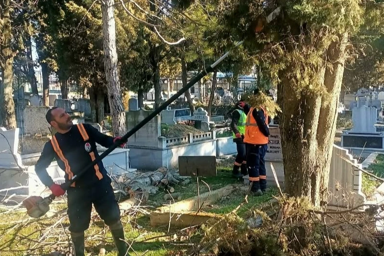 Kırklareli Belediyesi ekipleri, Karahıdır Mezarlığı ve Şehir Mezarlığı'nda ağaç budama çalışması gerçekleştirdi.