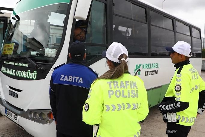 Kırklareli Emniyet Müdürlüğü Trafik Ekipleri ile Zabıta Müdürlüğü Ulaşım Ekiplerinin ortak yürüttüğü çalışmada, Kırklareli Üniversitesi Kampüs Durağı’nda şehir içi taşımacılık yapan otobüsler tek tek kontrol edildi.Belediyeden yapılan açıklamada, halkın ve öğrencilerin huzuru, güvenliği ve konforu için bu tür denetimlerin düzenli olarak sürdürüleceği belirtildi. Ayrıca, tespit edilen eksikliklerin giderilmesi yönünde sürücülerin uyarıldığı ifade edildi.
