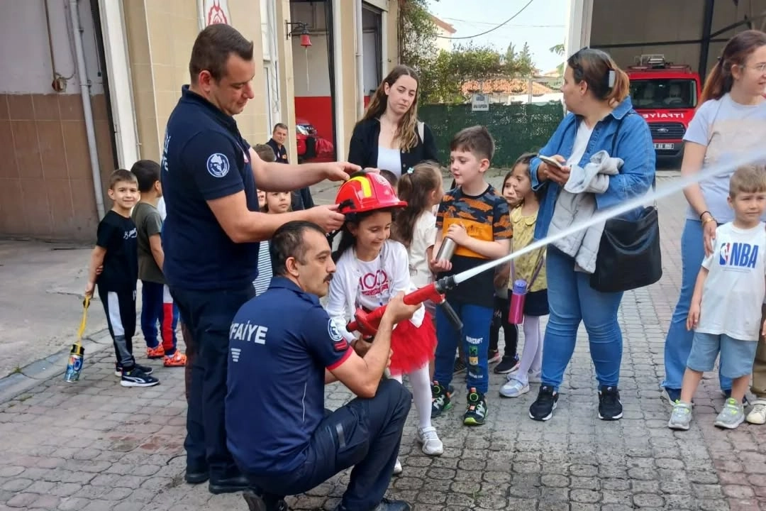 Minik öğrencilere yangın sırasında yapılması gerekenler anlatılırken, itfaiye ekipmanları tanıtıldı ve söndürme uygulamaları da büyüklerinin gözetiminde heyecanla gerçekleştirildi. İtfaiye yetkilileri, çocukların eğitime yoğun ilgi gösterdiğini belirterek, “Çocuklarımız hem eğlendi hem öğrendi. Bu tür eğitimlerle onların bilinçli bireyler olarak yetişmesine katkı sunuyoruz” ifadelerini kullandı.
